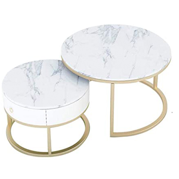It includes a wooden drawer for extra storage.Rock slab material surface + Stainless steel gold plating